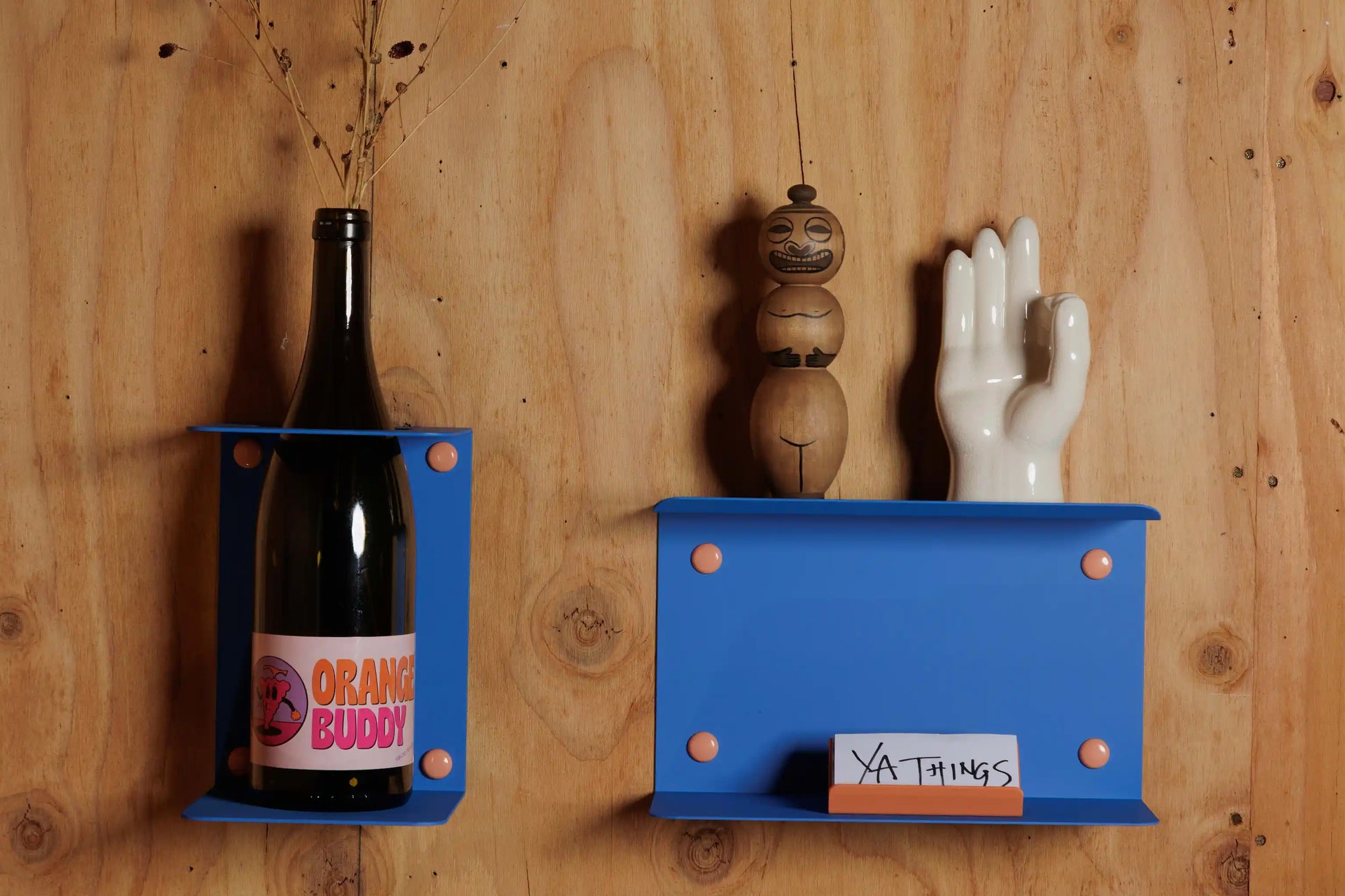 ナチュラルワインを選ぶ理由は、味だけじゃない。エチケットの色づかい、ボトルのかたち。気づけば、飲み終わったあともずっと手元に残していたくなる。このボトルベースは、そんな「捨てられない気持ち」から生まれました。お気に入りの一本を、ただ飾るだけじゃなく、壁に取りつけて、日々の風景に取り込む。一輪の花が加わるだけで、瓶の印象も部屋の景色も変わっていきます。ブルーとグレーの2色は、Ya Thingsらしい余白と遊びのあるカラー。ポップなボトルにも、ナチュラルな空間にも、さりげなく馴染みます。Bottle Vaseは、次の一本を選ぶ時間までも、少しだけ特別にしてくれるプロダクトです。
