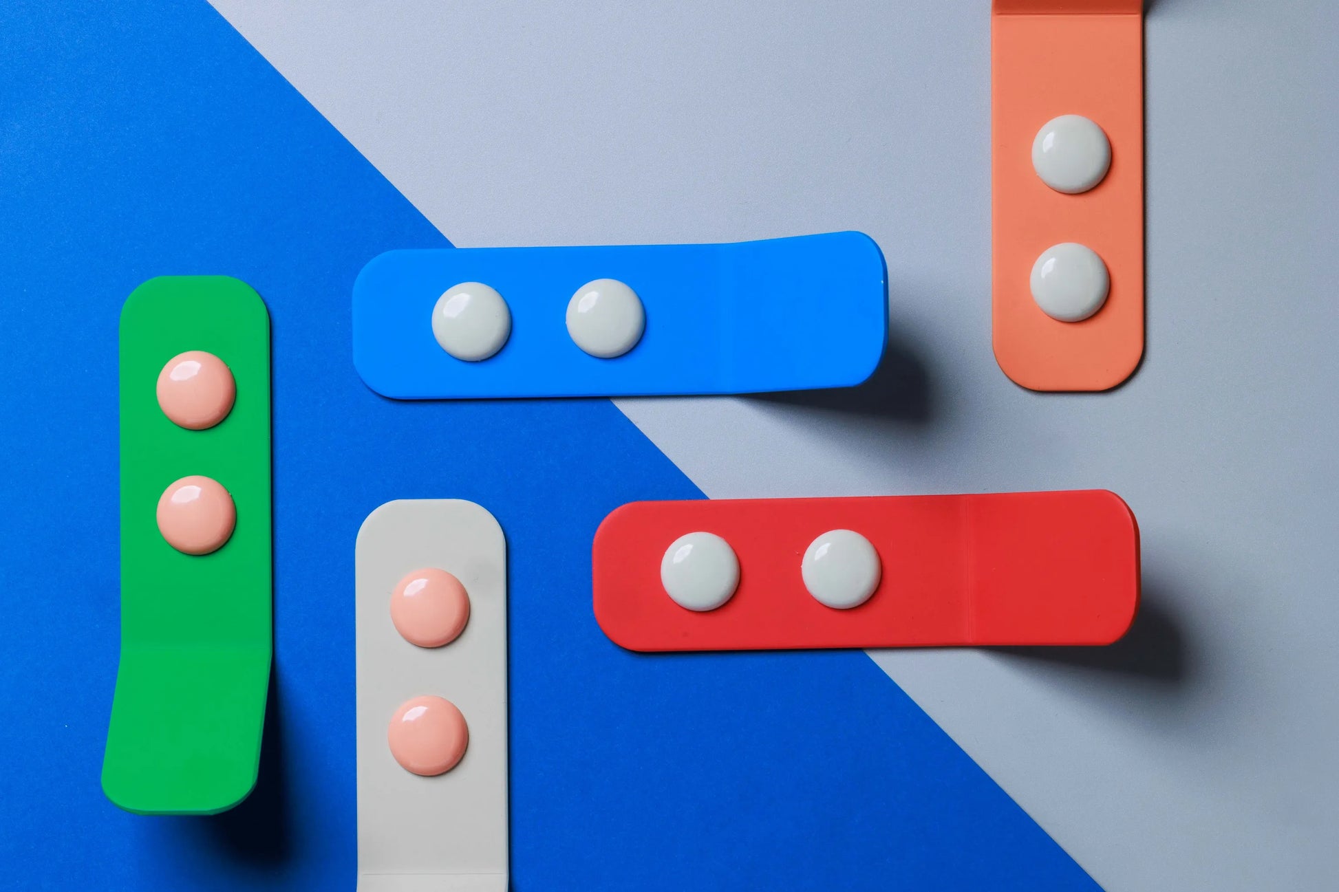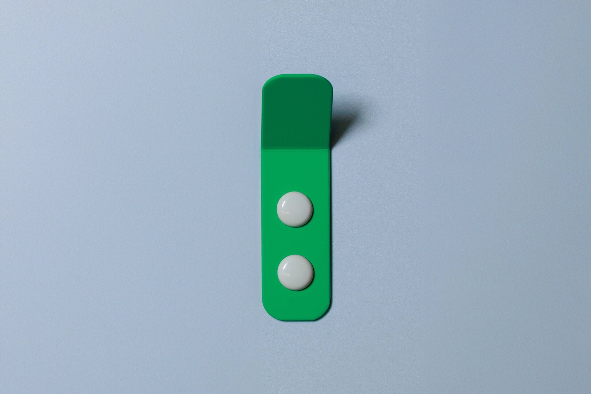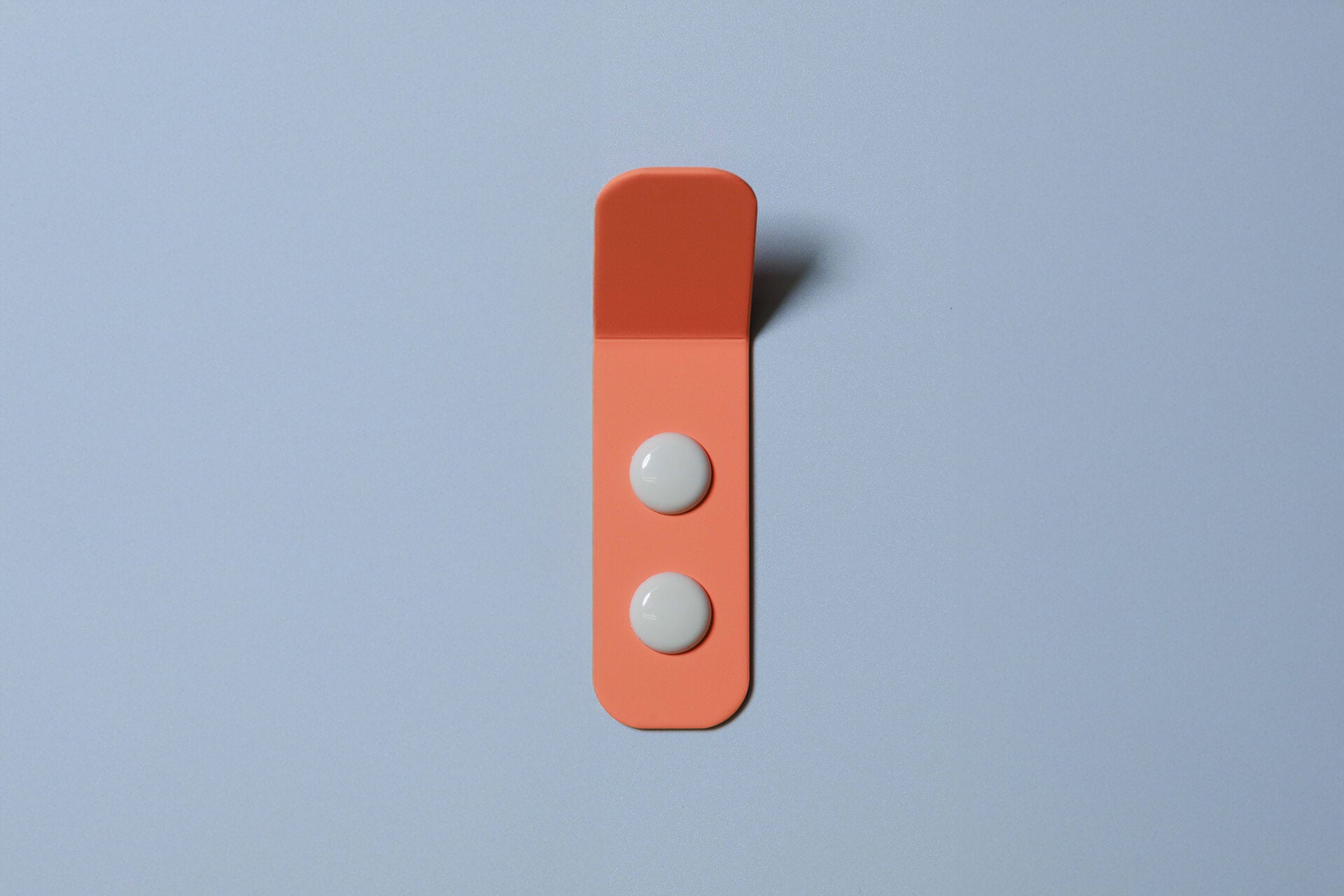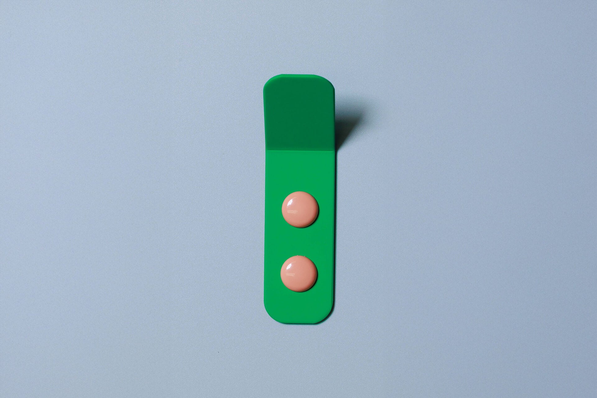 マットな質感とドットキャップが魅力のウォールフック。壁に“色”をかける感覚で空間にムードを作れるプロダクト。